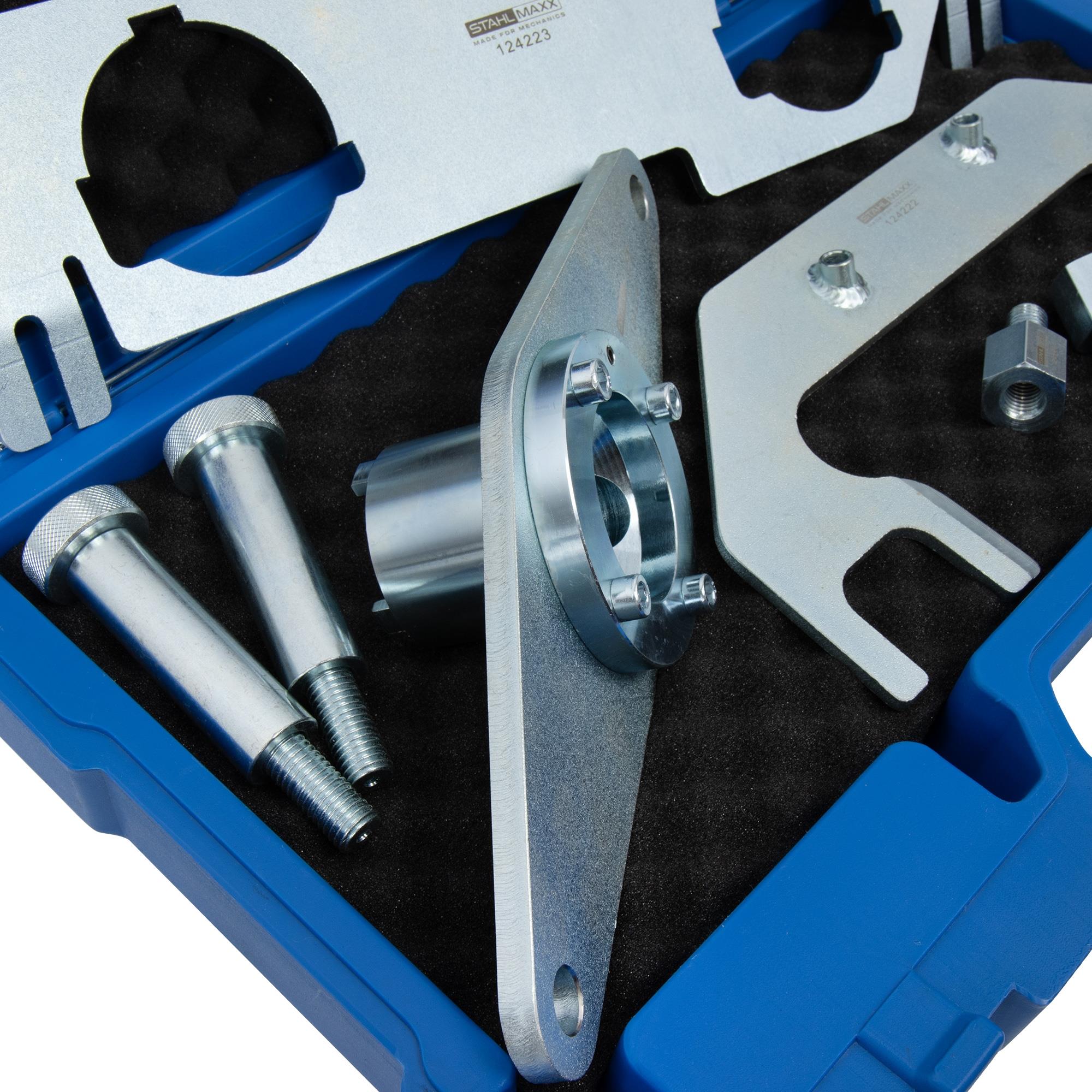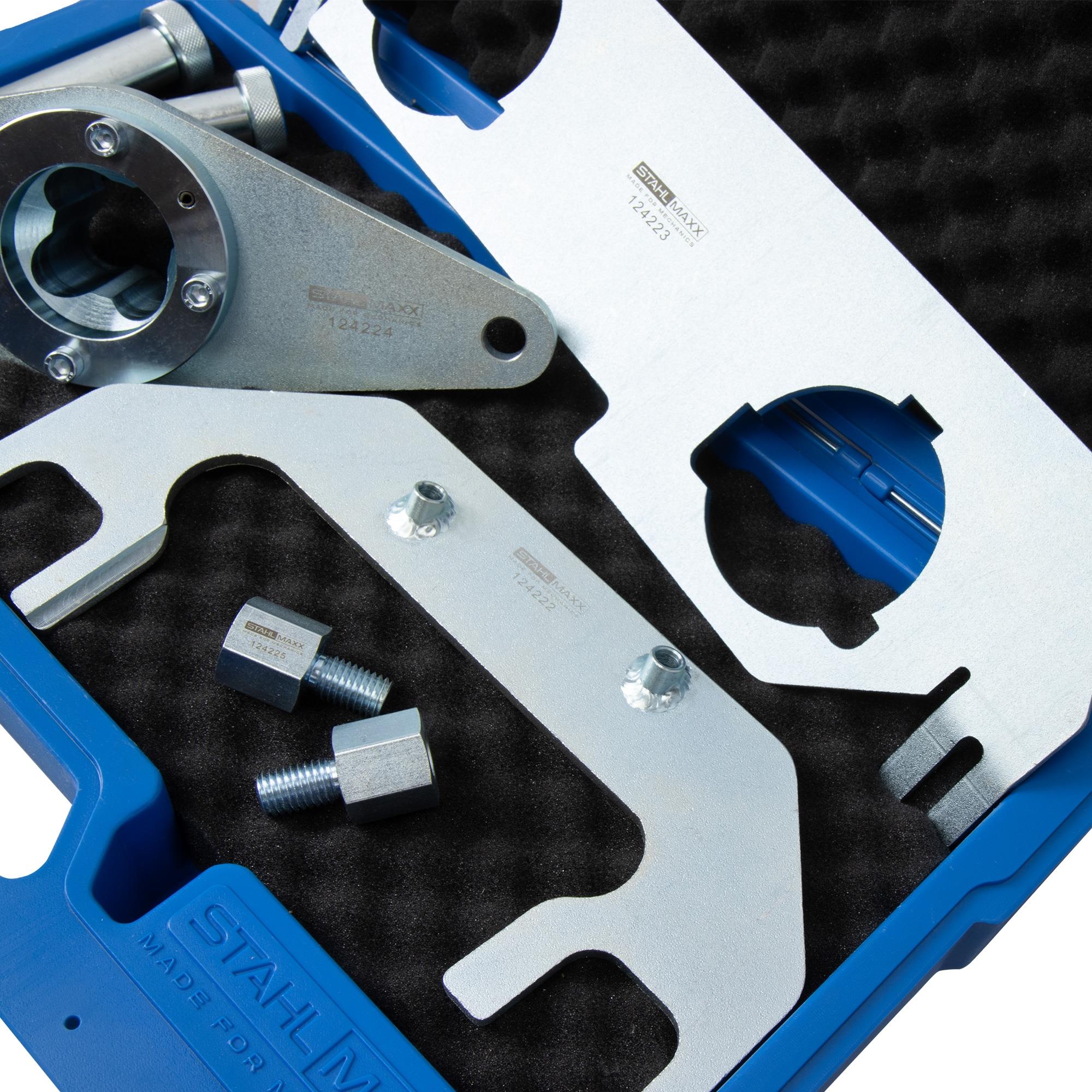 Instelgereedschap voor kleptiming voor revisie en onderhoud van de benzinemotoren van de Ingenium I4-generatie van Land Rover en Jaguar, met motorcode AJ200 en PT204.