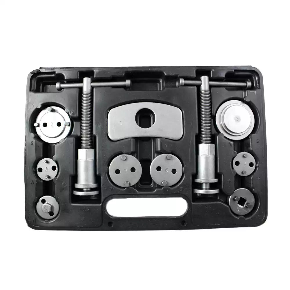 Met dit set kunt u zelf veilig de remblokken en/of remschijven van uw auto vervangen. Om deze te kunnen monteren is het nodig de vastzittende remzuigers terug te stellen. Met dit uitgebreide set is het mogelijk gelijktijdig een draaiende beweging te maken terwijl er ook druk op de remzuiger uitgeoefend wordt. U voorkomt beschadigingen aan afdichtrubbers en stofkappen en heeft voor bijna elk automerk het juiste gereedschap in uw bezit.